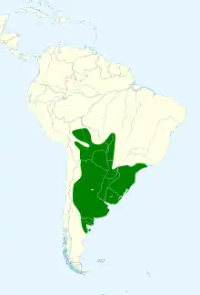 The grayish baywing (Agelaioides badius), formerly known as the bay-winged cowbird, is a species of bird in the family Icteridae. It is currently placed in the genus Agelaioides but has traditionally been placed in the genus Molothrus. It is found in the northern half of Argentina, Bolivia, Uruguay, Paraguay and southern and central Brazil, The isolated population in north-eastern Brazil is usually now considered a separate species, the pale cowbird or pale baywing (Agelaioides fringillarius). The greyish baywing has been recorded as a vagrant in Chile.[2]