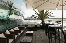 The passenger terminal building features shops, travel agencies, a restaurant and cafés, conference facilities, a bank, car rental and service counters. The apron provides stands for aircraft up to the size of a Boeing 747 or An-124. There are no jet bridges, mobile stairways are used for boarding. The airport has a VIP lounge for business class customers and customers with priority status.
