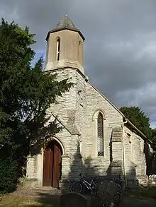The parish church of St Mary Magdalene consists of a chancel with a modern north vestry, nave, north aisle and west porch-turret. Whilst the church is 13th century in origin with some later additions, much restoration was completed in 1837 when the nave was enlarged and a west gallery added, providing 86 additional seats, according to a record in the church. The west wall, with an entrance and two windows, is modern, as is also the west porch, which is carried up as a square bell-turret changing to an octagon at the top and having an octagonal pyramidal roof. There is one bell of 1670 by John Martin of Worcester. The modern north aisle has two north windows and one at the east and at the west. The font, of flower-pot shape, may be an old one retooled: it has a shallow bowl. The top has been repaired on opposite sides, probably where there had been staples.[4]