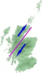 The Great Glen (Scottish Gaelic: An Gleann Mòr [an ˈklaun̪ˠ ˈmoːɾ]), also known as Glen Albyn (from the Gaelic Gleann Albainn "Glen of Scotland" [ˈklaun̪ˠ ˈaɫ̪apən]) or Glen More (from the Gaelic Gleann Mòr), is a glen in Scotland running for 62 miles (100 km) from Inverness on the edge of the Moray Firth, in an approximately straight line to Fort William at the head of Loch Linnhe. It follows a geological fault known as the Great Glen Fault, and bisects the Scottish Highlands into the Grampian Mountains to the southeast and the Northwest Highlands to the northwest.