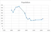 In 1831, the majority of males over the age of 20 (73% of employed males) were agricultural labourers. The next leading occupation, although only at approximately 6%, was males employed in retail and handicrafts.[10] Still in 1881, the majority of workers worked in agriculture, followed by general or unspecified commodities. At this time however, there are also records of females being employed although records show that the majority of females worked in an "unknown occupation." Many females also worked in dress or domestic services or offices.[11] According to the 2011 census, however, only 5 people were working in the agriculture, forestry and fishing industries. The three most popular employment categories were: professional, scientific and technical activities employing a total of 20 people, construction employing a total of 14 people followed by manufacturing providing employment for 11 people. This shows how the area and industry within the area has developed over the past 200 years.[12]