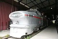 The EMD LWT12 locomotives and two passenger cars of each of the two Aerotrains that GM constructed are now on display.[23] The National Railroad Museum in Green Bay, Wisconsin, exhibits the Rock Island line's repainted Aerotrain locomotive number 2 and two of its coaches (parts of trainset number 2).[3][23][26] The National Museum of Transportation in Kirkwood, Missouri (near St. Louis) exhibits the Rock Island's similarly repainted Aerotrain locomotive number 3 and two coaches (parts of trainset number 1).[3][8][23][27] The designs on the repainted locomotives do not resemble those that the power cars bore when last serving the Rock Island line.