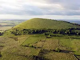 The summit is crowned by a low mound, marked as a tumulus on the Ordnance Survey 1:25,000 Explorer map.[2] This is probably a small Bronze Age burial mound. A small cairn has been built on top of it,[1] but was not there in the 1950s, when a dead tree trunk marked the spot.[5]