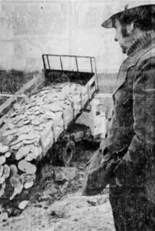 Several hundred people attended the event, at a time when Ossineke was a village of only 1,800 inhabitants.[1] The press reported that 40,000 or 44,000 pizzas were buried, though in later court documents, Fabbrini claimed to have only disposed of 29,188.[6][1][7] The pizzas were tipped into an 18-foot (5.5 m) deep hole from four dump trucks.[1] They were still enclosed in their cellophane wrappers.[6]