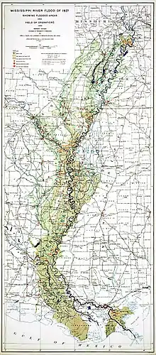 ![]() Mississippi River Flood of 1927 showing flooded areas and relief operation | |