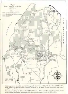 The Millinocket plant produced its first roll of newsprint on 9 November 1900.[2] A second mill in Madison opened in 1906. A third one opened in East Millinocket in 1907, which also had its own dam and hydroelectric facility.[3] Financiers of the corporation included Oliver Payne and William Collins Whitney.[4]