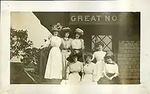 The Great Notch station depot was built in 1905 for the New York & Greenwood Lake Railway, a subsidiary of the Erie Railroad. The station was built as a green-red "type five" frame structure. While the main building was 12' × 28' × 18' in size, the station also included an old boxcar used as a tool house. The box car was only 12' × 45' and served the station for several decades. The station (telegraph call "GA") was just west of the Great Notch interlocking signal tower (telegraph call "GN"), which was built in 1900 to serve the junction of the Greenwood Lake Railway and its Caldwell Branch, heading south (railroad westbound) for the communities of Cedar Grove, Verona, Caldwell and Essex Fells. The station also served a local yard for train storage for the branch line via a wye.[8] At Essex Fells, connections could be made for train service to Morristown via the Morristown and Erie Railroad. The Caldwell Railroad diverged from the current New Jersey Transit line about 0.25 miles (0.40 km) west of the New Jersey Transit Great Notch station and followed its own route to Caldwell.[14] The station at Great Notch was more than just a building for people at the railroad. The station had a large water tower next to GA Signal and a potbelly stove. The station was tended by a husband and wife combination, serving the locals their daily newspapers and their mail. Great Notch did not receive mail delivery until the mid-1950s.[15]