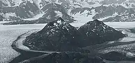 Great Nunatak in lower half of frame surrounded by Columbia Glacier in 1966