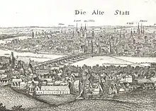 Hollar approached the problem realistically, while the two booklets mentioned came from Veduta tradition and captured an idealized Prague and especially from above. Now Hollar captured the perspective of the actual space required, changed the view of Petrin Hill and at the same time he managed to capture "the real picture of the city with its scenic relief and unique atmosphere".[1]
