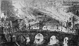 The great fire of Gateshead and Newcastle was a tragic and spectacular series of events starting on Friday 6 October 1854, in which a substantial amount of property in two North East England towns was destroyed in a series of fires and an explosion which killed 53 and injured hundreds. There is only one building still extant on the Newcastle Quayside which predated the fire.[1]