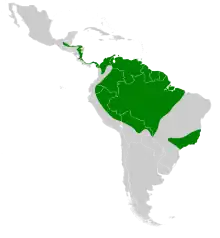 They range from southern Mexico through northeastern Guatemala and through most of Central America down through South America as far as southeastern Brazil and Bolivia.[8]