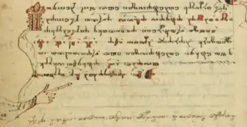 This work is a collection of sermons for Lent (Latin: Quadragesima, 'Fortieth'),[3][1] and is based on the popular work by Neapolitan 15th-century Franciscan preacher Roberto Caracciolo. According to the glagoljaši, the Kvaresimal was made on the basis of an Italian template based on a sermon by Bernardin of Siena.[2][4] In a colophon, Greblo says that he finished this work with his son-in-law Mihovil (Kalc) from Boljun.[4] The work thematically follows Greblo's first work, the Interpretation of the Passion of our Lord Jesus Christ. Greblo's calligraphy in this work is remarkable. The style is modest, and the book is hardly illuminated. Only the initials have modest decorations in red or black-red.[5][6] There are empty spaces at the end of the chapters that are filled with vignettes, in the form of "braids and rubrication made in red."[6] The binding was restored in 1959.[6][1]