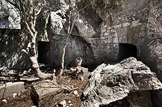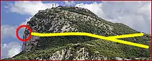 Green's Lodge Battery is in Gibraltar, the British Overseas Territory at the southern end of the Iberian Peninsula.[1][2] The artillery battery is located more than 1,000 feet up the North Face of the Rock of Gibraltar, at the northern end of the Upper Rock Nature Reserve, above Farringdon's Battery and adjacent to Ministry of Defence property.[3][4] Also referred to as the Superior Battery, the emplacement is positioned at the end of the Green's Lodge Nature Trail, off Signal Station Road.[3][4][5] Green's Lodge Nature Trail is more formally referred to as Green's Lodge Road, although it bears little resemblance to a road in its current state.[6]