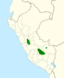 The green-and-white hummingbird is found on the east slope of the Peruvian Andes discontinuously from Huánuco Department south to Cuzco, including at Machu Picchu. It inhabits the edges and clearings of mature subtropical forest and also secondary forest between the elevations of 1,000 and 2,500 m (3,300 and 8,200 ft).[10]