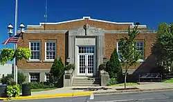 The building was designed by W. C. Weeks Inc. and completed in 1939 with WPA help. Originally housed a gym and stage on the first floor and city offices, a library and fire departments in the basement. The gym's roof is supported by early laminated wooden arches.[3][4]