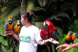 - Home to over 100 species of birds, including: macaw, bird-of-paradise, great curassow, blue-crowned pigeon, green turaco, channel-billed toucan, toco toucan, golden pheasant, vulturine guineafowl, wood duck, emerald dove, violet turaco, Asian fairy bluebird, red-and-yellow barbet, Taiwan sibia, finch-billed bulbul and eclectus parrot.