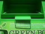 The bins are highly recognizable in part because of their trademarked name and electric green coloration.[2] Located in high traffic areas within multiple city regions of southern California, Green Boxes are exclusively serviced and managed by Green Box Electronic Recyclers, Inc. a California Corporation.[3]