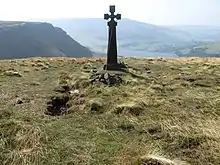 Industrialist John Platt built Ashway Gap House in 1850 on the south side of the valley. It was used as a shooting lodge until his brother James (MP for Oldham) was killed in a grouse shooting accident on the moors in 1857. Ashway Cross was erected on the moorland as a memorial to James. The vacant mansion and its estate were bought in 1897 by the waterworks board, which allowed it to be used as a Red Cross hospital for wounded soldiers during World War I. In World War II the house was used to billet Italian prisoners of war. After the house fell into decline it was demolished in 1981.[13]