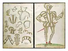 An album, now in the Victoria and Albert Museum, was drawn up by Jacob Halder which contains full-colour illustrations of twenty-nine different Greenwich armours for various Elizabethan gentlemen of high rank; many of the armours are part of large garnitures with the additional pieces of exchange also depicted. The album displays a picture of each customer standing in the same stylized pose, with right hand on hip and left hand holding a staff of office, and wearing the armour which was to be furnished for him.