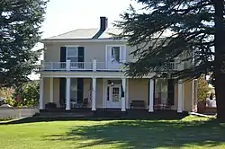 Greer House is a historic home located at Rocky Mount, Franklin County, Virginia. It is a two-story, three-bay, frame dwelling in the Greek Revival style. It has a low hipped roof and is sheathed on weatherboard. The front facade features a full width, one-story front porch topped by a balustrade. The building was started in 1861. It was originally T-shaped, until a series of three small building campaigns altered the form of the dwelling to resemble a square.[3]