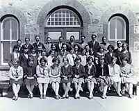The Lutherans built their first Peace Lutheran Church in 1905[39] and a second, larger building in 1951, the old building being sold to the Ukrainian Orthodox congregation.[40] The Roman Catholics, originally of substantially Irish stock, built St Columbkill Church in 1903[41] and, with an influx of Polish and Ruthenian families found their numbers considerably increased[41][42] and by 1944 moved and extended the church building;[43] in 1979 they opened a second, completely modern church building.[43] Protestant Austrians organised the St John's Evangelical and Reformed congregation in 1888 and built two churches in succession in 1894 and 1903[43] before amalgamating with the United Church in 1964.[44] The Baptists purchased the town's disused first schoolhouse in 1895 for use as their church; their congregation dwindled over time and in the mid-1960s the Apostolic Church purchased the building; they subsequently built a new church and the Masons acquired the old Baptist church for use as a lodge.[44] The Grenfell Revival Centre opened in a disused Lutheran church building in 1960.[45] The Ukrainian Catholics initially affiliated themselves with the Roman Catholics and worshipped jointly with them; in 1921 they were able to build their own church and in 1957 acquired the Lutherans’ old and now disused church building.[46] In 1991 a re-constituted Presbyterian congregation was established in Grenfell as Trinity Presbyterian Church.[47]