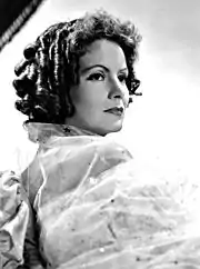 During her rise to stardom, film historian Mark Vieira notes, "Thalberg decreed that henceforth, Garbo would play a young, but worldly wise, woman."[43] However, according to Thalberg's actress wife, Norma Shearer, Garbo did not necessarily agree with his ideas stating "Miss Garbo at first didn't like playing the exotic, the sophisticated, the woman of the world. She used to complain, "Mr. Thalberg, I am just a young gur-rl!" Irving tossed it off with a laugh. With those elegant pictures, he was creating the Garbo image".[43] Although she expected to work with Stiller on her first film,[44] she was cast in Torrent (1926), an adaptation of a novel by Vicente Blasco Ibáñez, with director Monta Bell. She replaced Aileen Pringle, 10 years her senior, and played a peasant girl turned singer, opposite Ricardo Cortez.[45][46] Torrent was a hit, and, despite its cool reception by the trade press,[47] Garbo's performance was well received.[48][49]
