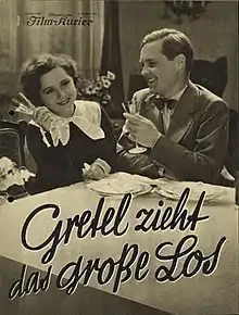 Gretel Wins First Prize (German: Gretel zieht das große Los) is a 1933 German comedy film directed by Carl Boese and starring Lucie Englisch, Leopold von Ledebur and Jakob Tiedtke.[1] It was shot at the Babelsberg Studios in Berlin. The film's sets were designed by the art director Willi Herrmann.