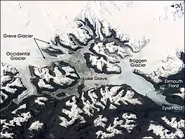 Greve Lake (Spanish: Lago Greve) is an ice dammed lake in Chile formed by the advance of Brüggen Glacier. It is fed by several glaciers. Lautaro volcano is located in its vicinity.