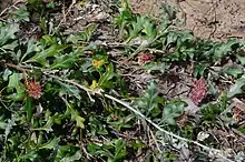 Grevillea ilicifolia, commonly known as holly grevillea or holly bush,[2] is a species of flowering plant in the family Proteaceae and is endemic to southern continental Australia. It is a spreading to prostrate shrub with holly-like leaves with sharply-pointed triangular to egg-shaped teeth or lobes, and clusters of green to cream-coloured and mauve flowers with a pink to red style.