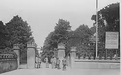 In the interwar period Hornchurch developed as a suburb of London and land was required for house building. Grey Towers was demolished in 1931.[2] The driveway to the house is now a road of suburban houses called Grey Towers Avenue and the entrance gates were moved to Hylands Park. Towers Cinema opened on part of the site on 3 August 1935. Some residential streets in South Hornchurch were named after places in New Zealand by Hornchurch Urban District Council in 1947 in reference to the use of the house.[4] The two lodges, built in the same crenellated style as the house survived to the 1960s and were used as dwellings.[2]