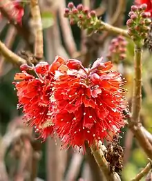 Unlike other plants sometimes included in the family Melianthaceae, Greyia has simple (undivided) leaves, flowers with ten stamens, and ovaries with parietal placentation.[1] Because of this, the genus has sometimes been placed in a separate family Greyiaceae, but under the APG II system and APG III system of classification, it was included in the Melianthaceae. Under the APG IV system, it is included in the Francoaceae.