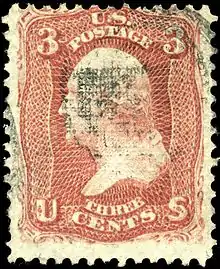 A grill on a postage stamp is an embossed pattern of small indentations intended to discourage postage stamp reuse. Used in the United States in the 1860s and 1870s, they were designed to allow the ink of the cancellation to be absorbed more readily by the fibres of the stamp paper, making it harder to wash off the cancellation.[1]