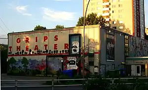 The Grips-Theatre in Berlin (official name: GRIPS Theater) is a well-known and well-respected emancipatory children's and youth theatre, located at Altonaer Straße at Hansaplatz in the Hansaviertel in Berlin's Mitte district. It is "the first theatre worldwide to deal sociocritically with the lives and living conditions of children and young people and to incorporate this in original humorous and musical plays".[1] It has gained a national and international reputation, not least due to its former artistic director Volker Ludwig's musicals for adults, such as its evergreen Linie 1, Café Mitte or the adaptation of Aldous Huxley's Brave New World. GRIPS' plays have been re-staged over 1,500 times in some 40 languages around the world.[2]