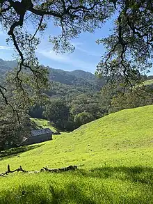 Grizzly Creek likely still remained in a comparatively natural state during the time its valley was cultivated throughout 19th and 20th centuries.[4] Farmers often left the habitats immediately along creek banks intact to prevent evaporation and erosion, hence the impressive collection of very old Valley oak and Coast Live Oak that still line the banks today.