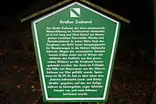 An educational path, the Flößersteig ("Rafting Trail") begins at the Neumann Mill, running parallel to the Kirnitzsch river to Bad Schandau. In the northern part of the Großer Zschand, under a rock overhang, is a cave, closed with an iron door that acted as an explosive chamber until the end of the Second World War in order to block the valley at this point.[2]