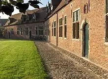 The Groot Begijnhof has the appearance of a small town in the city. It is a succession of streets, squares, gardens and parks, with tens of houses and convents in traditional brick and sandstone style.[1]