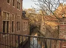 The Groot Begijnhof of Leuven is a well preserved beguinage and completely restored historical quarter containing a dozen streets in the south of downtown Leuven. About 3 hectares (7.4 acres) in size, with some 300 apartments in almost 100 houses, it is one of the largest remaining beguinages in the Low Countries. It stretches on both sides of the river Dijle, which splits into two canals inside the beguinage, thus forming an island. Three bridges connect the parts of the beguinage. The complete beguinage is owned by the University of Leuven and used as a campus, especially for housing academics.