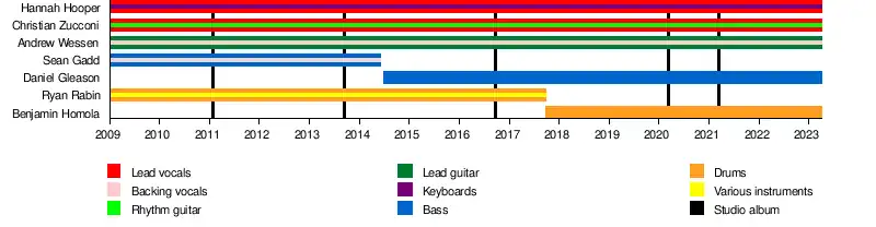 - Hannah Hooper – lead and backing vocals, keyboards (2009–present)