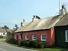 The use of lime mortars began as limewashing. This was applied regularly to walls, and even to thatched roofs.[10] Although the cottage architecture of pre-industrial Wales, particularly in the South and South West, was based on earth walls more than mortared stone masonry, this was still coated externally with a limewash. By the later part of the eighteenth century, this fondness for limewashing and its frequency was noted by many travellers to the area.[11][12] Turf houses though, whilst common, were not limewashed.[10]