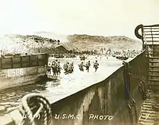 Marines wading ashore at Guam.