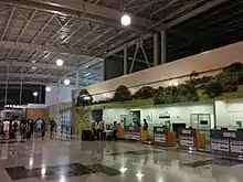 The new terminal building, encompassing approximately 23,000 m2 (250,000 sq ft), features a contemporary design that both increases efficiency and capacity over the existing facility. Construction started on 19 October 2010; the terminal opened on 12 January 2012.[13] Further expansion of the terminal commenced in January 2017 and was completed in November; the expansion adds capacity for the airport to receive 5 new airlines.[14]