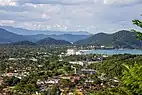 Guarujá (/ɡwɑːrʊˈʒɑː/; Portuguese pronunciation: [ɡwaɾuˈʒa]) is a municipality in the São Paulo state of Brazil. It is part of the Metropolitan Region of Baixada Santista.[3] The population is 311,116 (2022 preliminary census count) in an area of 143.58 km2 (55.44 sq mi).[4] This place name comes from the Tupi language, and means "narrow path". The population is highly urbanized, forms a 2nd urban core and beachfront island across the river from São Vicente Island, the island (Ilha de Santo Amaro) is coterminous with the municipality, with exception of small offshore isles like Ilha dos Arvoredos.