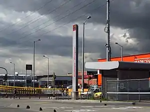 The simple station without exchange Guatoque - Veraguas, forms part of the TransMilenio mass transit system of Bogota inaugurated in the year 2000.