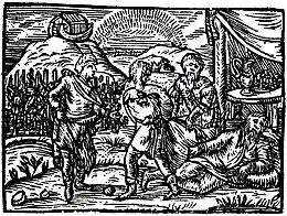 "Gubben Noak" ("Old Man Noah", originally "Om gubben Noach och hans fru" or just "Gubben Noach", and since 1791 also "Fredmans sång n:o 35")[8] is a traditional Swedish song. It is both a drinking song and a bible travesty by Carl Michael Bellman.[6] Bellman had completed the song by 1766, but it was probably written earlier.[6] The setting for the song is the time when Noah from the Old Testament had come to rest on the mountains of Ararat. As mentioned in the Book of Genesis 9:20–21, Noah established a vineyard and got drunk from drinking the wine. The rest of the story departs from the biblical account.[6] Along with Fredman's Songs 36–43, such as "Joakim uti Babylon" and "Ahasverus var så mäktig", Gubben Noak is one of the biblical travesties that made Bellman popular during the 1760s.[9]