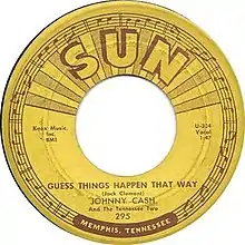 "Guess Things Happen That Way" is a 1958 cross over single by Johnny Cash, which was written by Jack Clement. The single[2] was Johnny Cash's fourth #1 on the country chart spending eight weeks at #1, and a total of 24 weeks on the chart.[3]