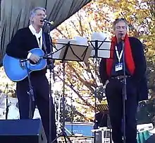 Guido and Maurizio De Angelis, also known as Oliver Onions,[2] are a prolific duo of Italian musicians, multi-instrumentalists, composers and singers, as well as television and film producers. They reached the height of their popularity in the 1970s and early 1980s both as composers (under their own names) and as performers (as Oliver Onions), mainly thanks to their scoring and theme song composing and performing for action/comedy films starring the popular duo of Bud Spencer and Terence Hill,[3] many of which became huge hits all across Europe, both cinematically and musically. After a period of retirement from the music business in the 1990s and early 2000s, during which they moved into television and film production through their own company (named after themselves), they had a musical comeback thanks to a one-off concert event in Budapest, Hungary, billed as Oliver Onions Reunion Live Budapest and organized by local promoter Gábor Kóves mainly because of the duo's popularity in his homeland, itself due to the fact that Spencer & Hill films were hugely popular in the country during the Communist regime - and, according to Maurizio De Angelis's commentary on the show, still are.[4] The event, testified by the 2017 release of a double CD/DVD box set, led to a series of other successful shows in Italy and Europe in the following years.