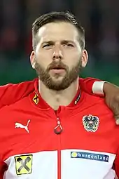 He scored his first goal for Austria on 6 October 2017, netting the 1–1 equalizer in a 3–2 win against Serbia.[19]