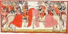 In 1258, the Guelphs held the power in Florence and expelled the Ghibellines from the city. Later on, the Ghibellines, led by Manfred of Hohenstaufen, retook Florence in one of the bloodiest battles in the history of medieval Italy, the Battle of Montaperti of 1260.[4] While in power, with fellow Guelph Tegghiaio Aldobrandi, Guerra consuls the Florentines to not engage in open battle in Siena in the hopes of avoiding the defeat of Montaperti.[5] After the battle, Guerra found refuge in nearby Romagna until he was able to return.[2]
