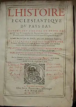 • L'Histoire ecclésiastique des Pays-Bas (Arras, Guillaume de la Rivière, 1614). Available on Google Books