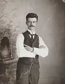 Kahlo was born in Pforzheim, Grand Duchy of Baden, German Empire (now in Baden-Württemberg, Germany), the son of jeweller Jakob Heinrich Kahlo and Henriette Kaufmann.[1] His daughter, Frida Kahlo, maintained that he was of Hungarian-Jewish descent.[1] A 2005 book[2] by Gaby Franger and Rainer Huhle traced Kahlo's genealogy, and stated that "despite the legend propagated by Frida," Guillermo did not have Jewish Hungarian roots, but was born to Lutheran parents who "came from families accommodated in Frankfurt and Pforzheim."[3]